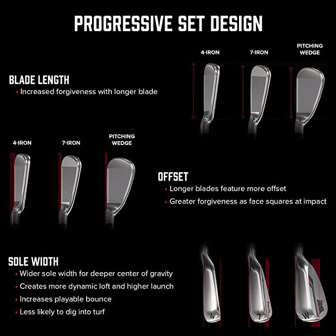 The progressive set features varied blade length, offset, and bounce, for greater forgiveness in harder-to-hit long irons and maximum control in shorter irons. They deliver incredible distance and much needed consistency you can count on.