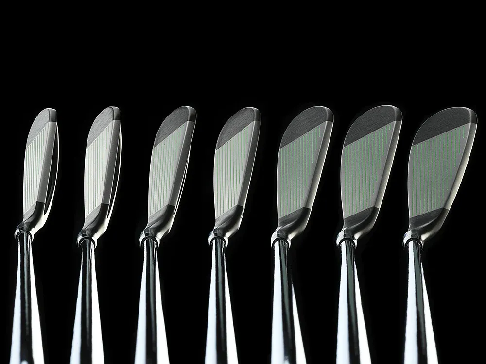 These irons have an undercut cavity that shifts the center of gravity rearward for a higher moment of inertia. Larger sweet spot resulting in more forgiving shots.